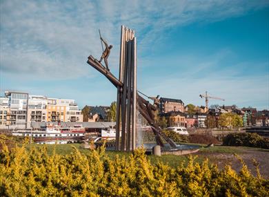 På Smieøya i Skien, øya mellom Skien sluse og Damfoss, står fløtermonumentet "Gjennom…
