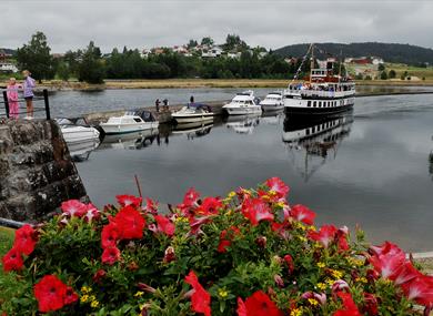 Nedenfor sluseanlegget er det ventebrygge for fritidsbåter. Nasjonal sykkelrute nr. 2,…