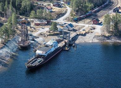 På Tinnoset ble togene fraktet videre over Tinnsjøen med jernbanefergene D/F Ammonia og M/F Storegut (begge er bevart og kan sees i dag). På motsatt side av innsjøen, ved Mæl, starter den historiske Rjukanbanen.