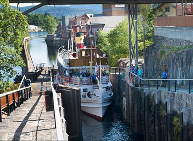 Hogga er det øverste sluseanlegget i Telemarkskanalen. Herfra kan du seile til Dalen uten…