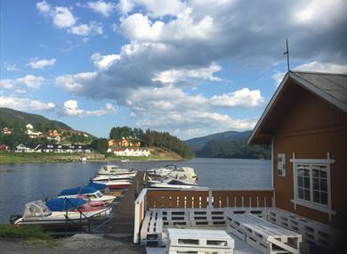 Idyllisk bryggje på sørsida av Bandak/Telemarkskanalen med overnattingstilbod for…