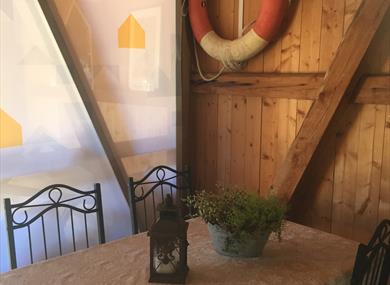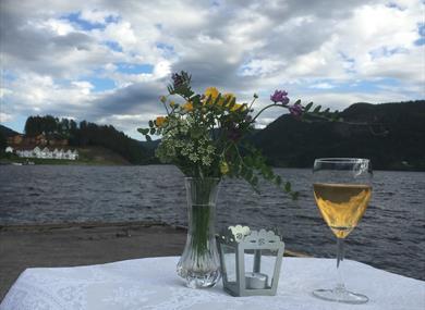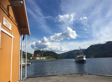 Vi holder til heilt nede ved vannkanten, like ved Kviteseid Gjestebrygge. Du kan ta båten for å besøke oss eller du kan parkere bilen 50 m unna.