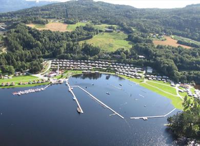 Uterestauranten ligger inntil butikk og service-anlegget med utsikt utover vannet. Trivsel er stikkordet her, med grønne plener og bugnende blomsterbed vil du føle at du sitter i en tropisk hage.
