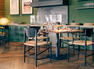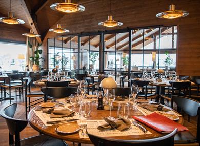 Blikk Fjellbrasserie utgjør hjertet av hotellets spiseopplevelser, og her venter en fortryllende a la carte-meny skapt av stjernekokk Jimmy Øien.