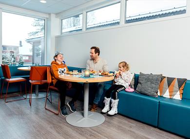På ett av rommene finnes det også hev/senk på toalett og vask. Spør betjeningen om hjelp til å finne det beste rommet for deg og din familie!