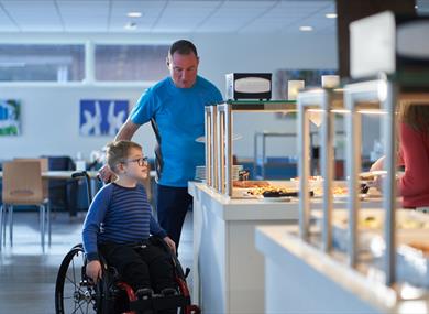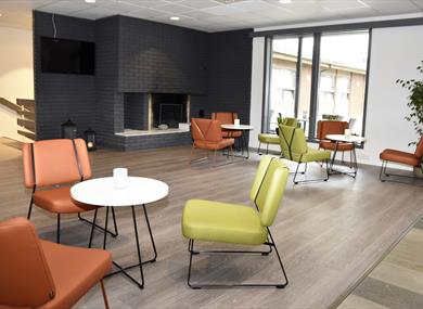 Alle fellesarealer er godt merket med gode kontraster for svaksynte. Hotell fritidsparken har også en stor flott spisesal, tv-stue, bar og moderne møtelokaler, samt heis med tale og blindeskrift. Mer informasjon om tilretteleggelser finner du her.
