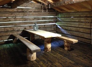 Hytta er bygd i den gamle bygjeteknikken "lafting" og inneholder gang m/kjøkken,bad m/vask,dusj og wc.Opphaldsrom med køyeseng,sovesofa,bord og tv.