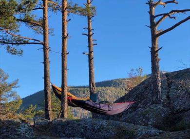 Om du har lyst til å ligge ute under åpen himmel, så tilbys det en liten hengekøyepark.