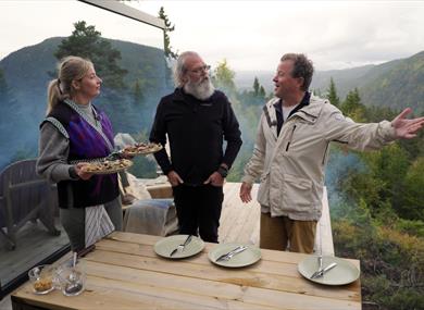 Bo behagelig i moderne glasshytter med nydelig utsikt over Dalen og Bandak. Her lever du tett på naturen og dyrelivet, mens du sover i deilige senger og nyter en Nespresso på sengen. Du kan velge mellom 2 glasshytter, en med plass til to personer og en med plass til 3 personer. Hver hytte har egen bålpanne til kos og prat under stjernehimmelen. Ønsker du å grille, er det mulighet for det også.